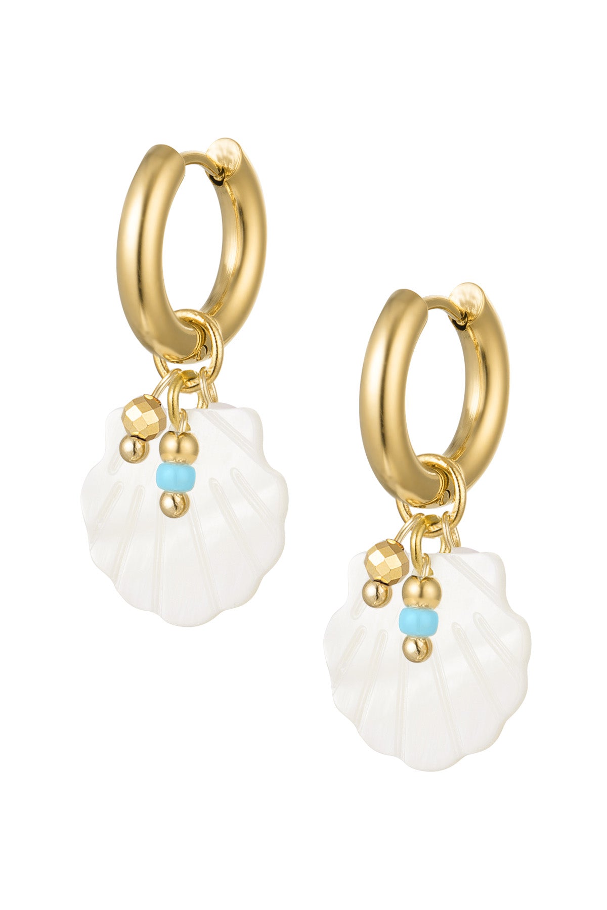 Ohrringe mit Muschelanhänger und Perle – Gold