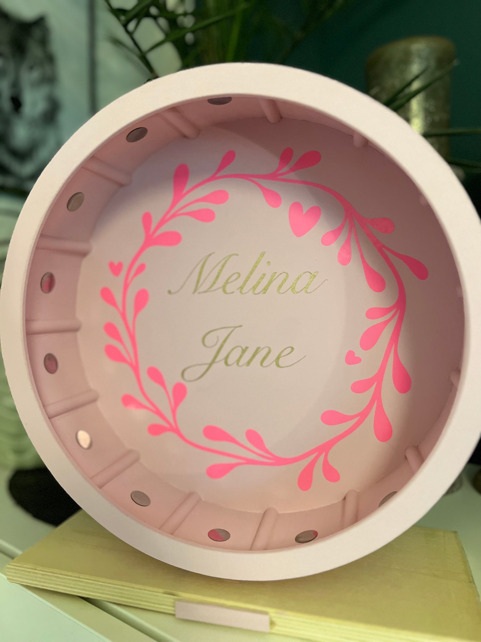 Schreib bitte den Namen, der auf das Regal soll und deine Farbwünsche als Notiz bei deinem Bestellabschluss.